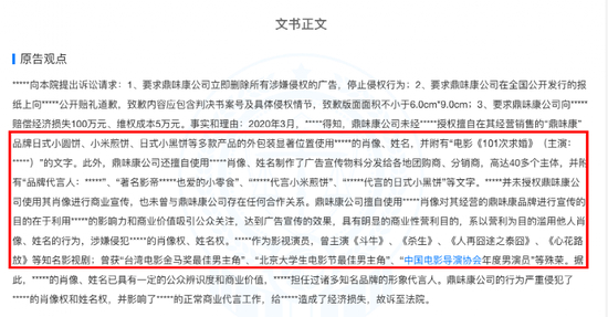 值得注意的是,此前黄渤方曾向鼎味康公司寄送过律师函,但鼎味康公司在收到律师函后并未停止侵权行为,侵权后果进一步扩大。最终法院判定鼎味康公司公开向黄渤致歉,并赔偿经济损失100万元,维权成本2820元。