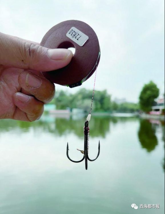 出于好奇,阿先生叫了两个朋友,带着网兜来抓鱼。这条鱼游速快,时间过去了半个多小时,还是没捕到,阿先生决定尝试用锚钩。