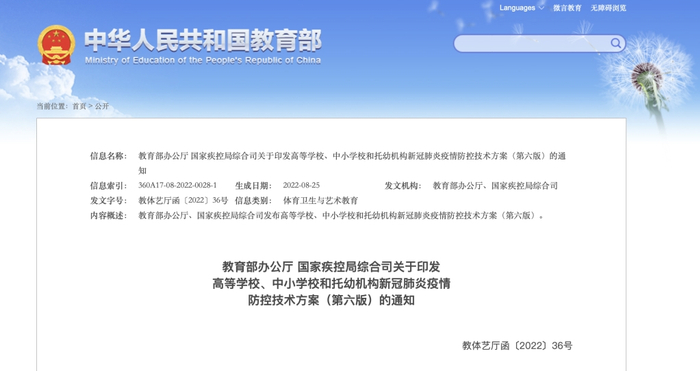 人民日报健康客户端消息,不得对来自低风险区的师生员工采取集中隔离等“层层加码”措施,低风险区师生返校核酸全国互认。8月26日,教育部发布了高等学校、中小学校和托幼机构新冠肺炎疫情防控技术方案(第六版)。