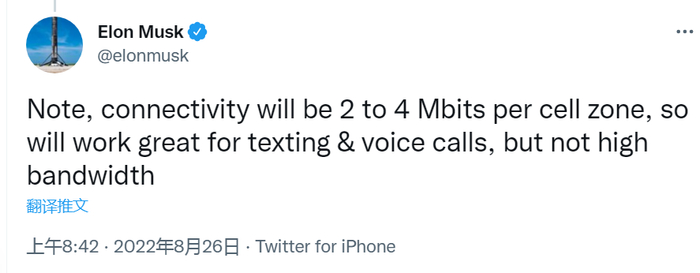 但是,如果用户身处没有信号的地区并且急需求救,它也足够“在紧急情况下为人们提供连接。”用马斯克的话说,它具有“拯救生命”的使命。