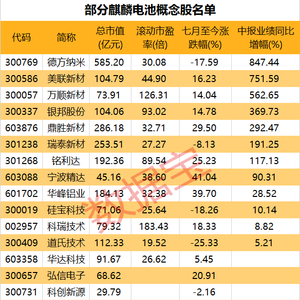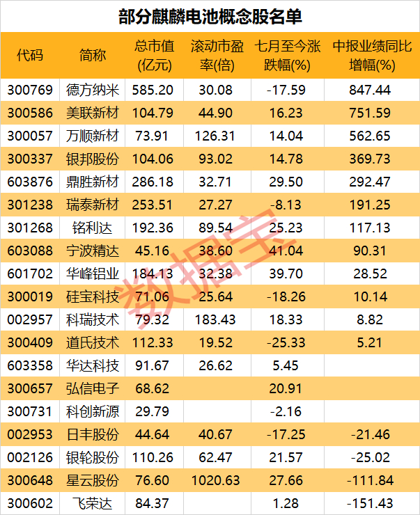 7只麒麟电池概念股上半年业绩翻倍,高增长概念股抢先看