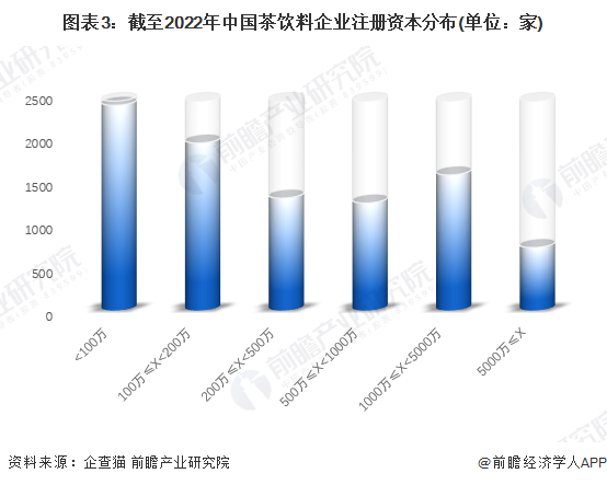 ——茶饮料企业注册资本在500万以上的企业超过35%