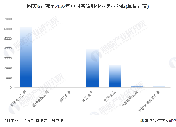 根据中国企业数据库企查猫,目前存续和在业的企业共10565家,中国茶饮料企业以有限责任公司为主,目前共有6254家;在存续和在业的10565家企业中,个体工商户有3923家。