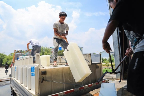 冰块需求激增,也带动制冰厂生意火爆。