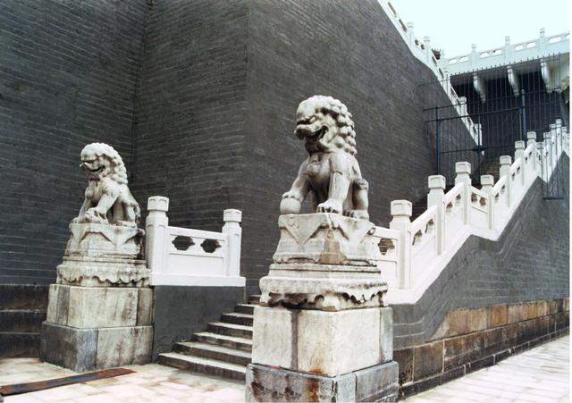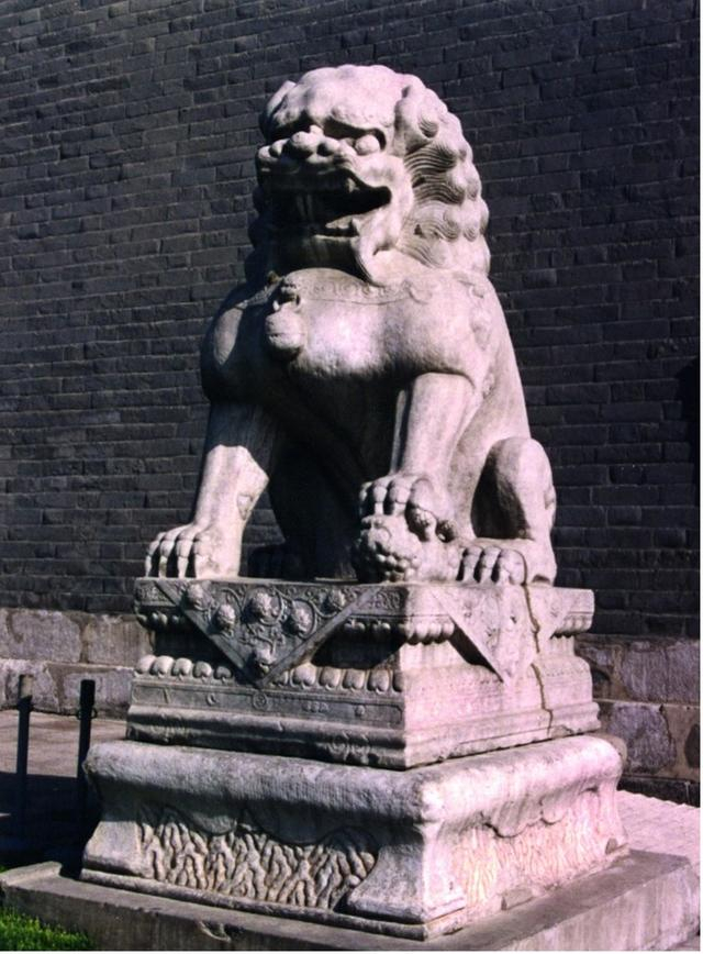 据孔庆普著《北京的城楼与牌楼结构考察》载:“1958 年,人民英雄纪念碑落成以后,经中央批准,拆除中华门及其两边的红墙,由第一建筑工程公司施工。同时将中华门南面的一对石狮子移到正阳门内门洞两侧,改为面向北,位置相应调换,雄狮在西,雌狮在东。”中华门建筑拆了,环境改变了,石狮被安置在正阳门城楼的城门洞北侧,头朝北,总算是把明代石狮保留下来。“1977 年,修建毛主席纪念堂期间,工程总指挥李瑞环接受群众的建议,将置于正阳门内一对石狮子(原中华门外的石狮)移到正阳门外门洞两侧,狮面向南,雄狮在东,雌狮在西。”石狮就这样成为正阳门城楼的守门狮。