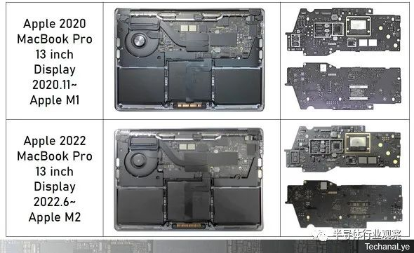 图5:2022年6月发布的MacBook Pro主板和M2处理器