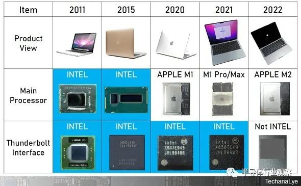 自 2020 年 11 月发布的 MacBook 采用 Apple M1 以来,英特尔处理器就已停止使用,但许多苹果产品继续使用英特尔的 Thunderbolt 芯片(2022 年 3 月发布的“Mac Studio”也是英特尔制造的)。