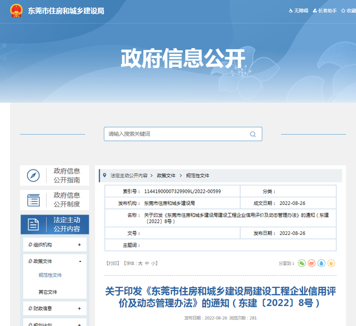 《东莞市住房和城乡建设局建设工程企业信用评价及动态管理办法》印发