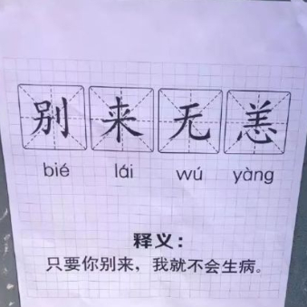 疫情期间,“别来无恙”一词被人们赋予了新的含义——“你别来,我无恙”,成为朋友圈中的流行语。