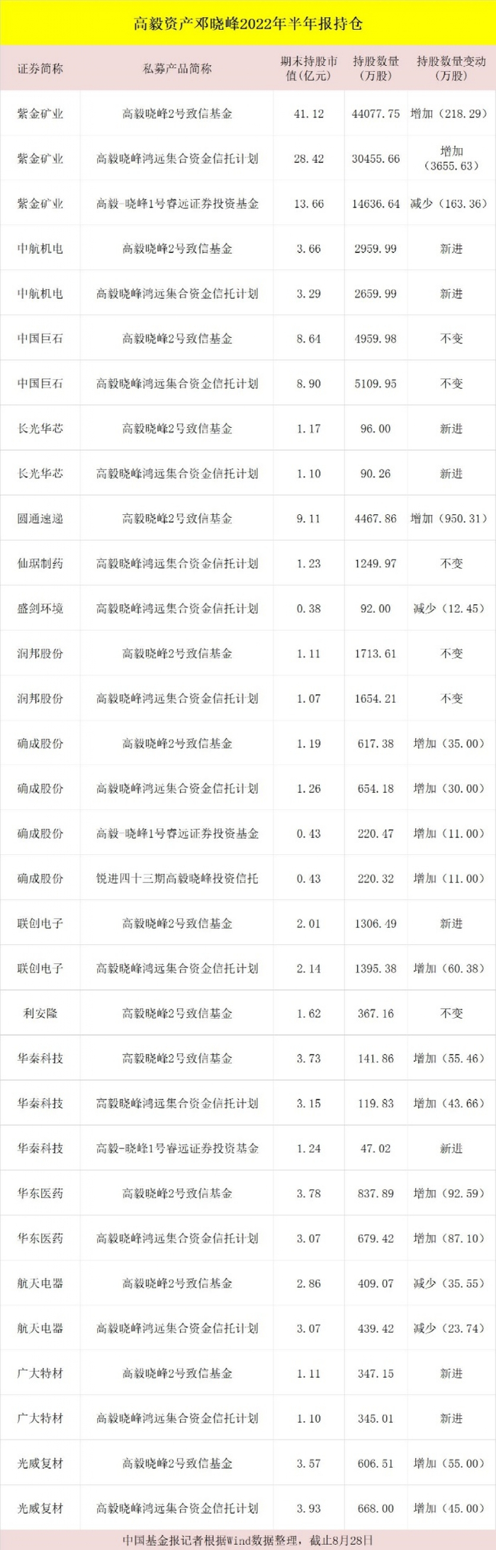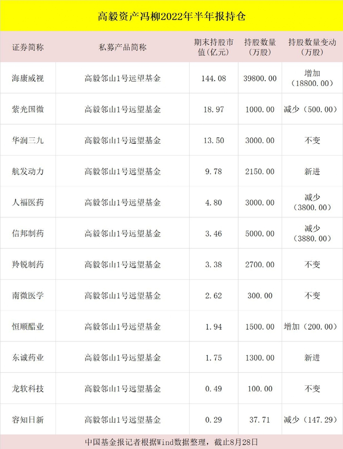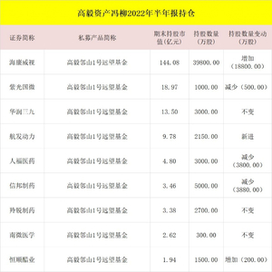 高毅、景林、重阳…,头部私募持仓大曝光(表格)