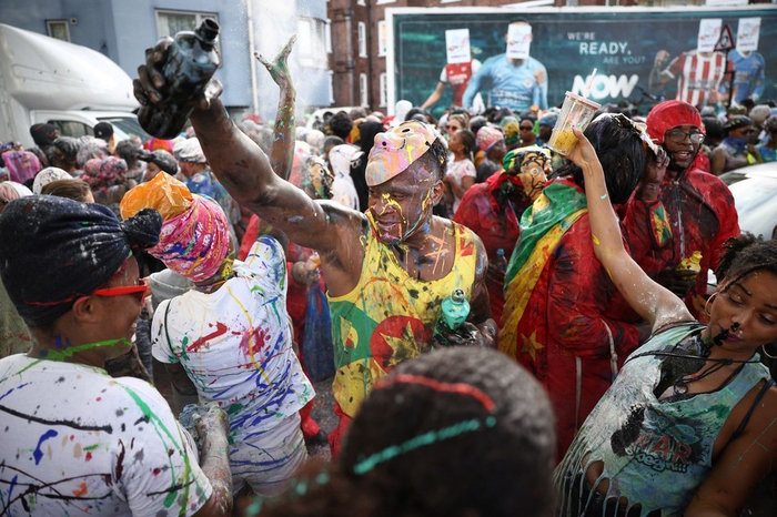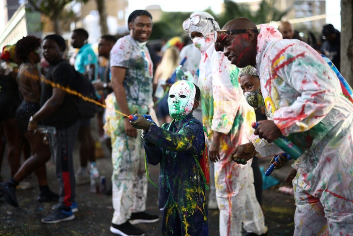 当地时间2022年8月28日,英国伦敦,暂停三年后,诺丁山狂欢节盛大回归。诺丁山狂欢节(Notting Hill Carnival)起源于1964年,是欧洲规模最大的街头文化艺术节,仅次于巴西的里约热内卢狂欢节,每年8月底的最后一个周末在英国伦敦西区诺丁山地区举行,以非洲和加勒比地区文化为主题,是英国多元文化的象征之一。