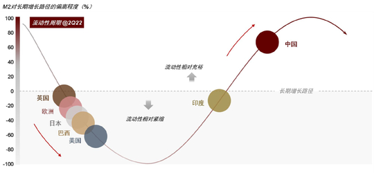 图表:当前海外经济流动性快速紧缩,而中国仍有放松空间