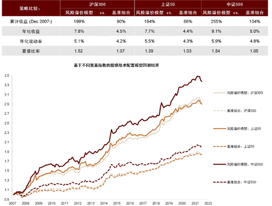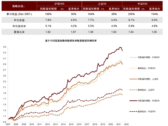 图表:不同指数标的风险溢价回测结果与基准的比较