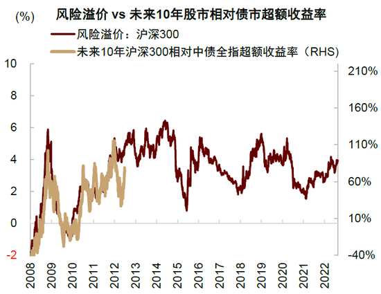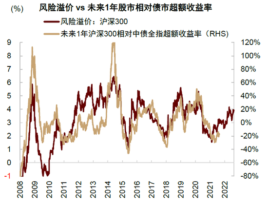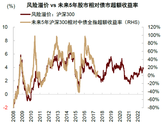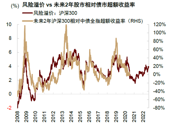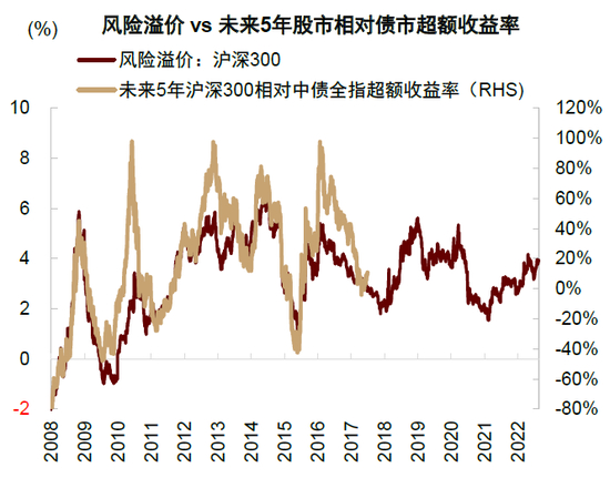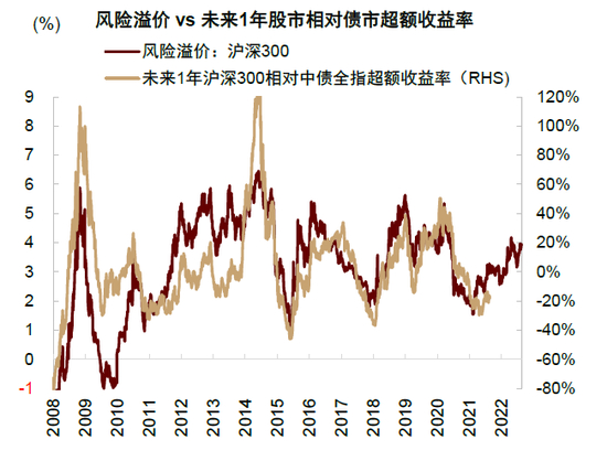 图表:沪深300风险溢价对于未来不同持有期长度的股债超额收益均有一定预测效果