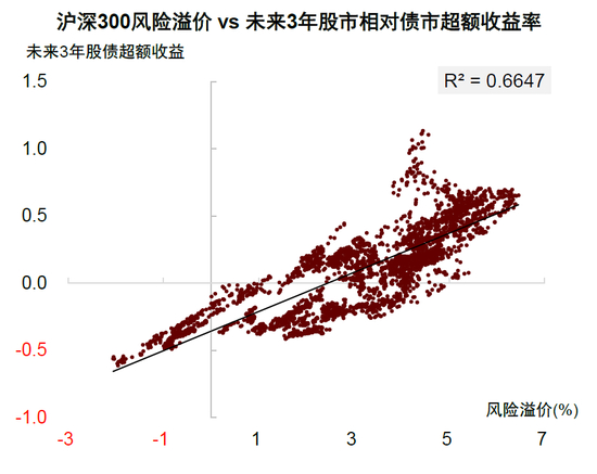 图表:沪深300风险溢价与未来3个月-10年间沪深300指数超额收益(相对中债全指)的拟合优度