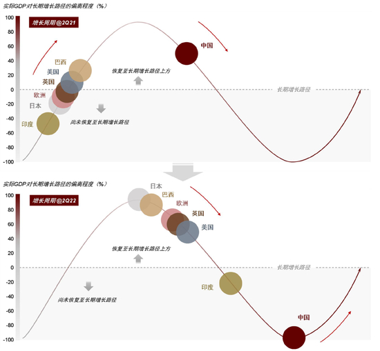 图表:过去一年全球经济周期保持错位运行,但运行方向出现逆转,从“中国下+海外上”变为“中国上+海外下”