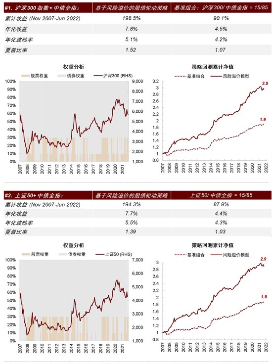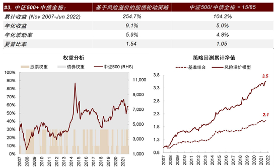图表:风险溢价模型股债权重变化与回测指标汇总