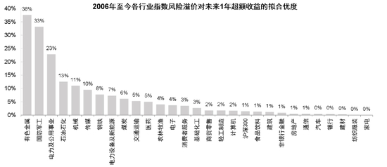 图表:各行业风险溢价对各自未来超额收益的样本内拟合优度