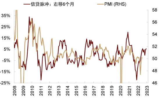 流动性环境边际转松、无风险利率下降,带动风险溢价上行,因此风险溢价与信贷脉冲几乎同步变动。