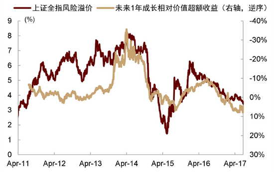图表:…2017年后风险溢价与未来1年成长/价值相对收益反向