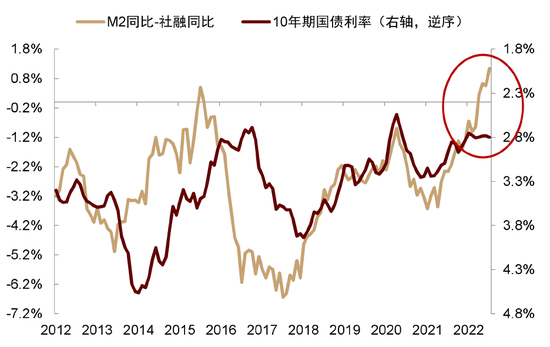 图表:M2-社融增速差隐含长端利率仍有下行空间