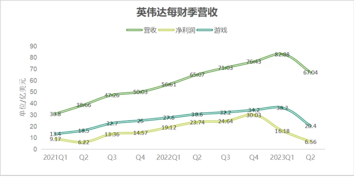 这一季度,英伟达营收67.04亿美元,环比下降19%;净利润为6.56亿美元,环比下降59%,降回到两年前同期水准。英伟达把业绩滑坡归结于游戏业务,其营收为20.4亿美元,环比下降了44%。