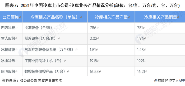 3、冷库行业上市公司冷库相关产品产销量对比