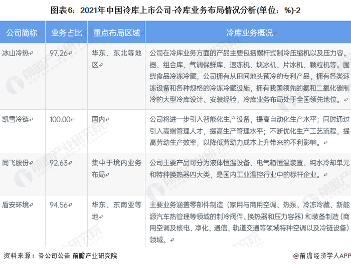 2、冷库行业上市公司业务布局对比