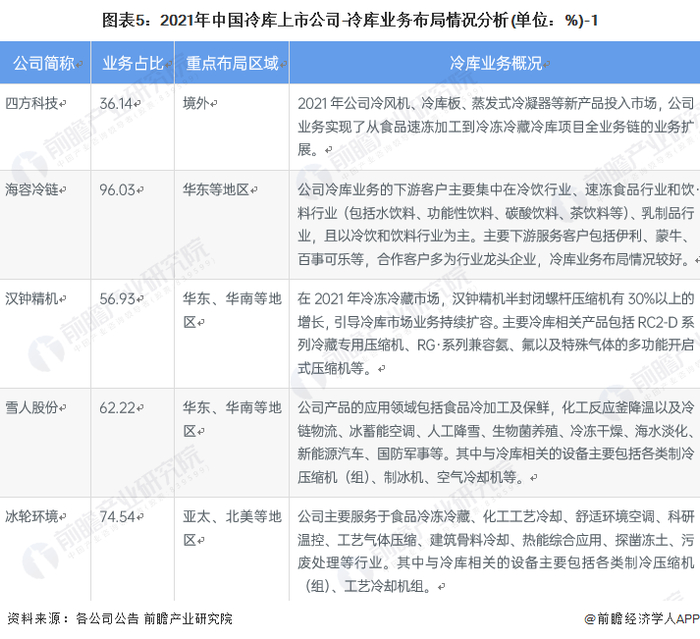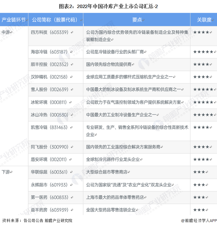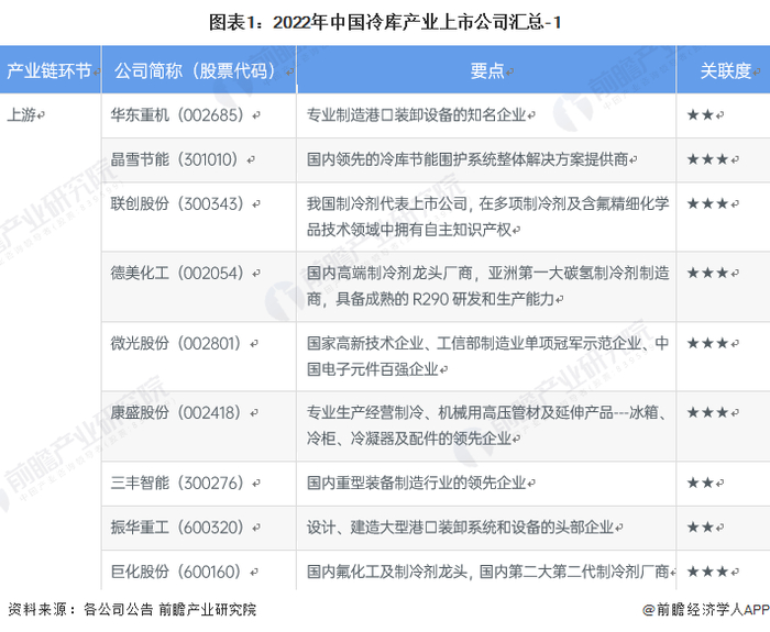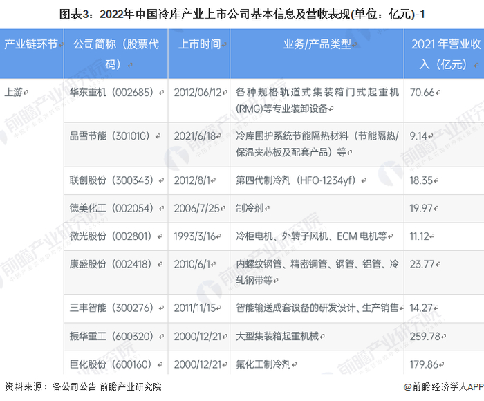 1、冷库产业上市公司汇总