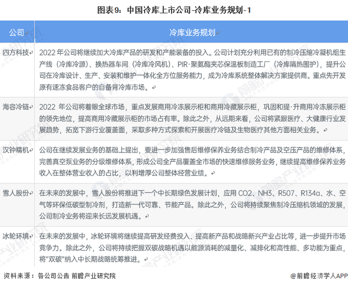 5、冷库行业上市公司冷库业务规划对比
