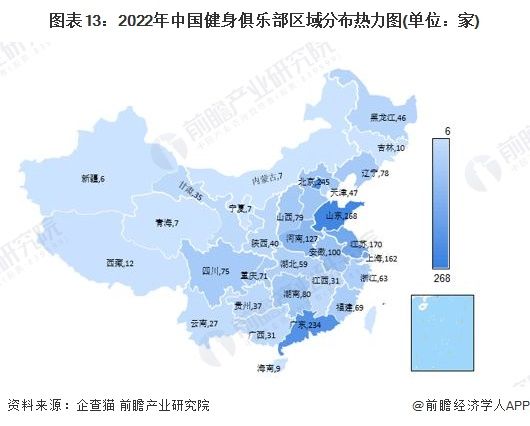 1、区域竞争:健身俱乐部多集中于人口大省