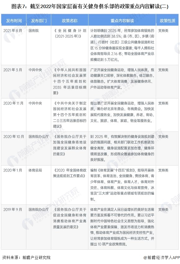 近年来,国务院、体育总局等多部门都陆续印发了支持健身俱乐部的发展政策,壮大体育产业规模。同时,《“十四五”国民健康规划》中提出促进健康与养老、旅游、互联网、健身休闲、食品等产业融合发展,壮大健康新业态、新模式,将体育产业与养老相结合,促进产业之间的协同发展。