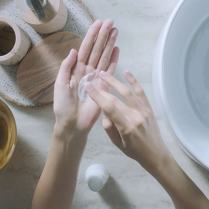 取适量(建议1滴管)精华液于手心,点涂在脸颊并轻轻推匀至全脸。