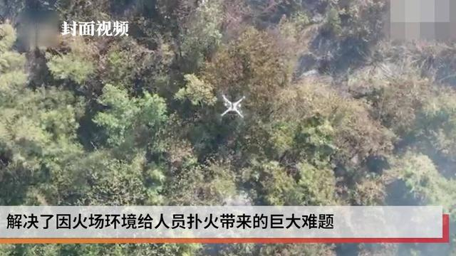 “投弹!”指挥人员一声令下,无人机从高空投掷,炮弹精准坠入火点。顿时,炮弹携带的干粉将火焰笼罩,周边50平方米的火线迅速熄灭并被阻隔。