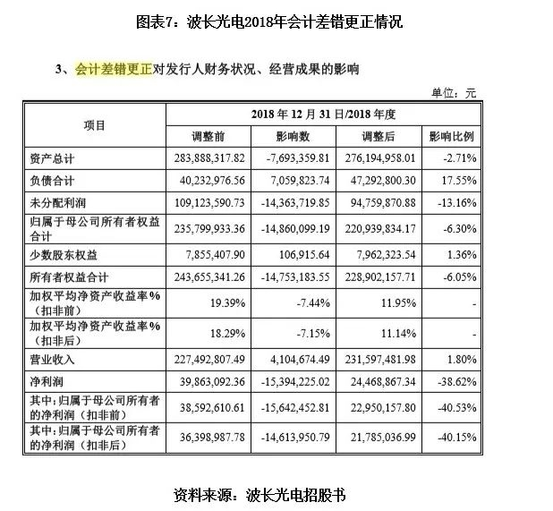 图表7:波长光电2018年会计差错更正情况