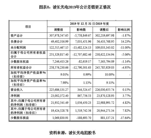 图表8:波长光电2019年会计差错更正情况