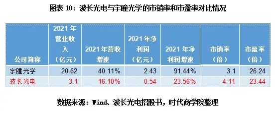 图表10:波长光电与宇瞳光学的市销率和市盈率对比情况