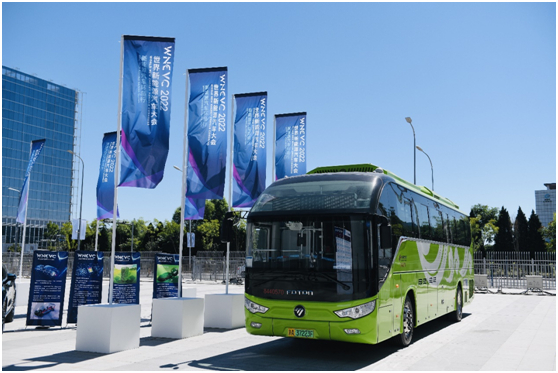 在大会的户外车辆联合展示区展示了福田汽车的另一款氢能源产品——福田欧辉BJ6122氢燃料电池客车。据悉,该车采用国内首创150kW燃料电池发动机,燃料电池系统效率高达60%,并搭载70MPa的储氢系统;排放物仅为水,真正实现零排放,绿色无污染。