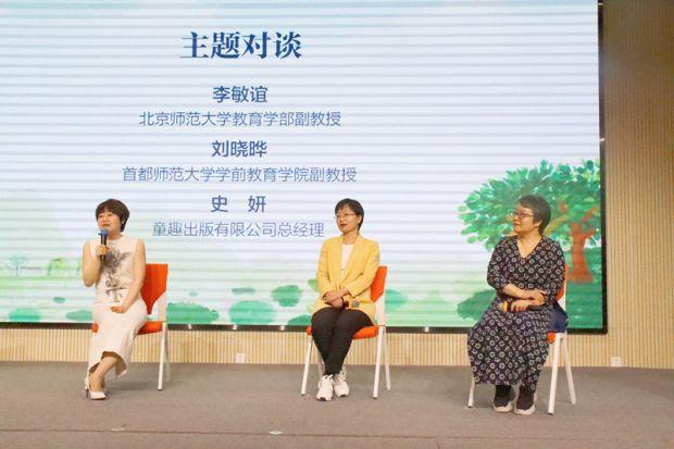 北京师范大学教育学副教授李敏谊、首都师范大学学前教育学院副教授刘晓晔和童趣出版有限公司总经理史妍围绕儿童自主阅读、分级阅读等话题展开了主题讨论。李敏谊提到最新研究结果显示家庭阅读环境下儿童自主阅读的频率与儿童的阅读能力呈正相关。刘晓晔则认为分级读物应该贴近孩子生活,让文本更加适合孩子。史妍在发言中分享了童趣出版有限公司在出版汉语分级读物方面的经验,并介绍了出版社未来在分级阅读领域的规划。活动中,童趣出版有限公司邀请部分专家成为国内第一本汉语分级期刊《漫趣·我会自己读》的编委会成员,并现场为专家颁发聘书。
