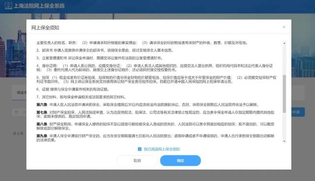 点击“添加保全申请”后,阅读网上保全须知并点击“确定”。