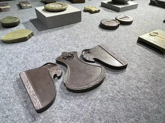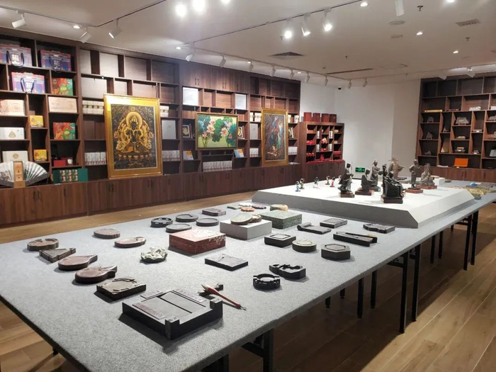 △馆校企文创产品研发基地位于市博物馆首层文创展示中心内,展示了端砚、广府金绣、肇庆名人雕像、特色砚雕、创意文具、肇庆手信等文创产品。图源 多彩肇庆