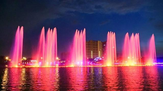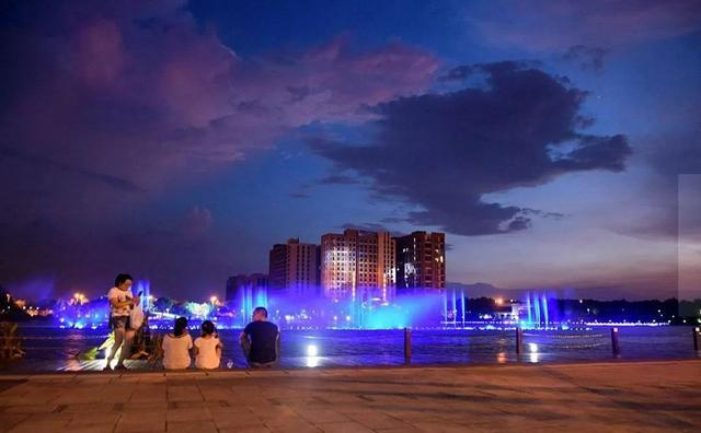 入夜后的新城公园流光溢彩,微风带着碎光片片的尾迹,划破夜色的河面。中央水池的喷泉在空中散成朵朵水花,如梦如幻。行人们漫步前行或临河而坐,清风带起衣袂飘飘,也带走了心中的烦闷。