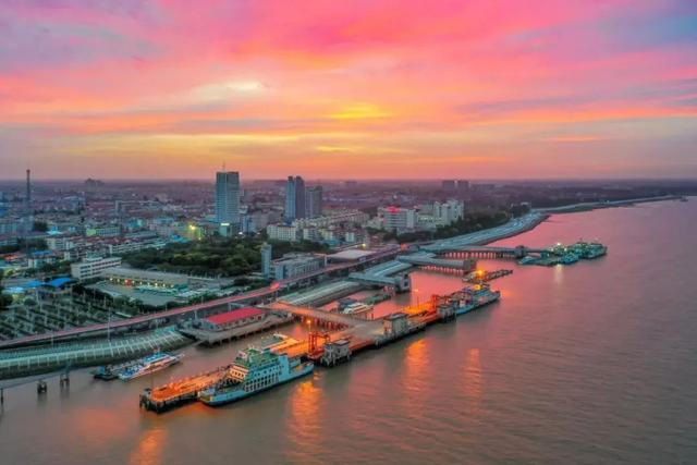 云影倚近轮渡,黄昏抵达码头,三两成行的人们陆续走上南门港“红毯”。碰到好天气时,没有云雾的遮挡,天空由明亮的白色变成瑰丽的红色,随着太阳慢慢接近地平线,江水在落日的映衬下波光粼粼,整个天空被渲染得绚烂无比,散发出令人心醉的光晕。