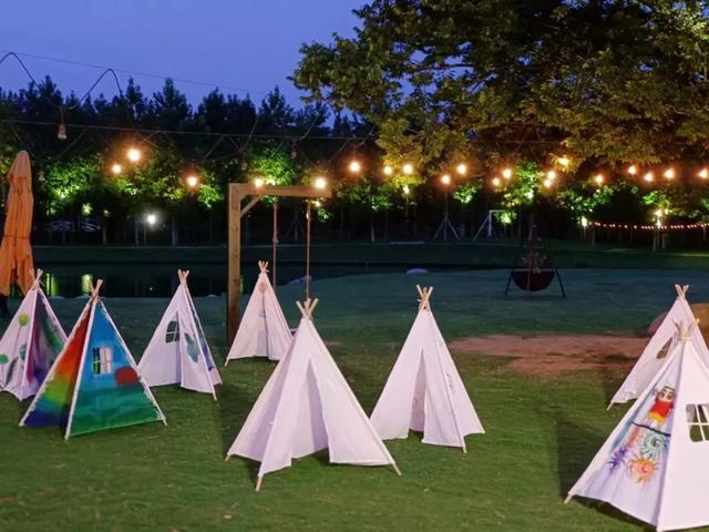 高家庄生态庄园是一家集旅游、休闲、度假、餐饮、住宿、会务、娱乐、农业观光为一体的综合性生态休闲农庄。入夜后,庄园内的灯亮起,氛围感拉满!露天电影、烧烤派对、唱K,城市生活体会不到的浪漫这里都能拥有。