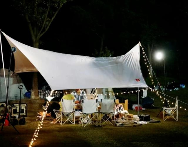 星光露营也是此次夜游公园的主打项目,在550亩的阳光大草坪上吃烧烤、看电影,体验久违的热闹氛围,尽情感受乡村生活的闲适、恬静。
