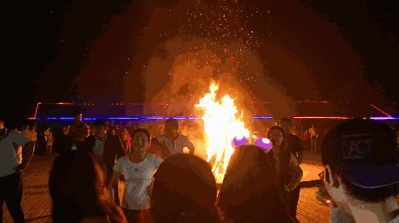 夜晚,度假村内营地内燃起熊熊篝火,大家忘掉了平日的烦恼,牵起身旁朋友的手,随着音乐的节奏,围着篝火跳起舞,载歌载舞,尽情地释放自己。
