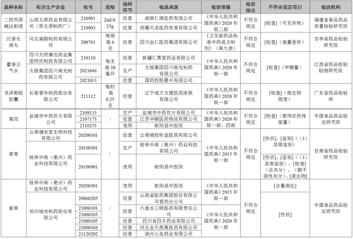 国家药监局上述通告显示,对上述不符合规定药品,药品监督管理部门已要求相关企业和单位采取暂停销售使用、召回等风险控制措施,对不符合规定原因开展调查并切实进行整改。