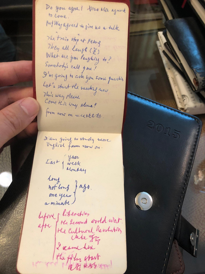 比如,“任重而道远,一定要实现”,“要在去年发展的基础上,今年更加创新,更上一层楼”,“做人要知足,做事要知不足,做学问要不知足”,等等。而日记本最后一页,他还会对当年做一个简单总结,记录这一年做了多少台手术、出差多少次,等等。