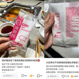 猪肚鸡火锅锅底系粉料冲泡?海底捞遭质疑