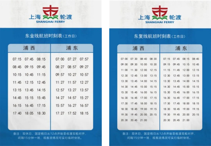 早些年黄浦江上还没有跨江大桥,往来浦江两岸需要坐渡轮,这种交通工具一直保留到今天。我在坐渡轮时发现它的时刻表非常严格,两班之间间隔大约半小时左右。